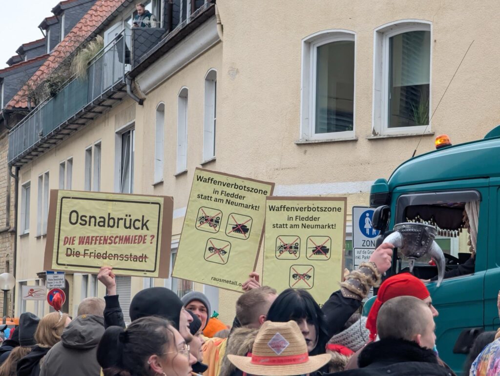 „Osnabrück feiert den Ossensamstag, im Hintergrund wird die Friedensstadt weiter zu einer Waffenschmiede umgebaut.“ so ein Mitglied der Aktionsgruppe. „Die VW-Fabrik mit 2.300 Beschäftigten sowie mit insgesamt 10.000 Arbeitsplätzen drumherum (Zulieferer etc.) steht vor dem aus, immer noch droht eine Rüstungskonversion. Das müssen wir verhindern!“